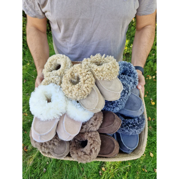 Ge ditt barn värme och mys med våra handgjorda fårskinnstofflor från