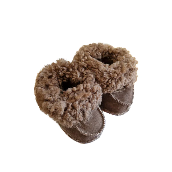 Mjukt fårskinn håller små fötter varma och bekväma.