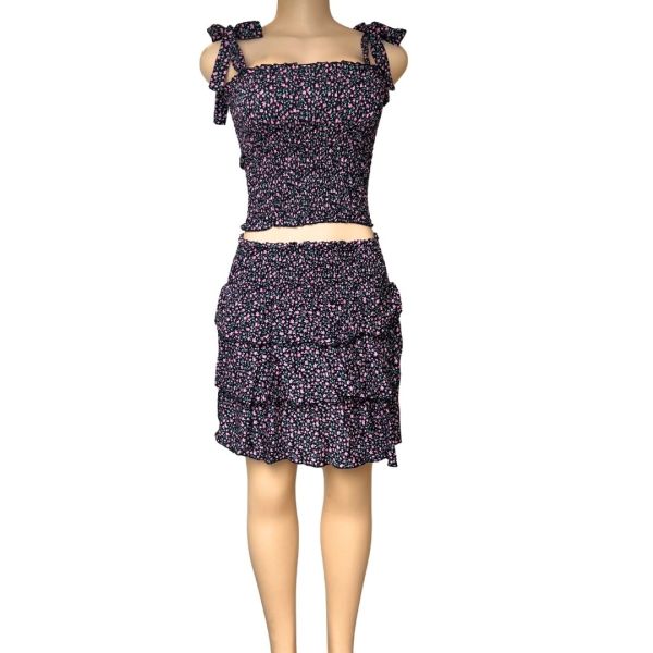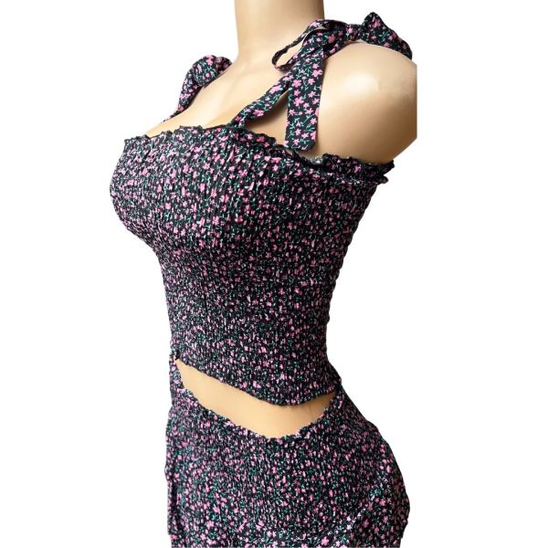 Ett sött och somrigt set i one size med både stil och komfort. Det småblommiga tyget ger en