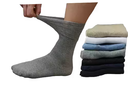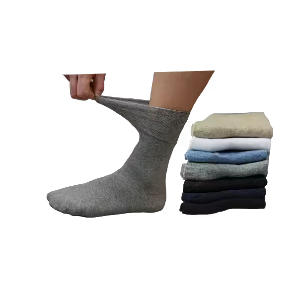 Komfortabla Lösa Resårstrumpor – Perfekt Passform Dessa strumpor med lös resår sitter bekvämt utan att strama åt. Den handkettlade, platta tåsömmen förhindrar skav och irritation över tårna. Stickade med hög nåltäthet för optimal stretch, välj din skostorlek eller mindre om du är mellan storlekar (om fötterna inte är svullna). Storleksmarkering under foten underlättar sortering. Tillverkade av 70% bomull, 28% polyamid, 2% elastan för mjukhet och hållbarhet. Tvätt: 60°C. Perfekta för daglig komfort utan tryck eller obehag!