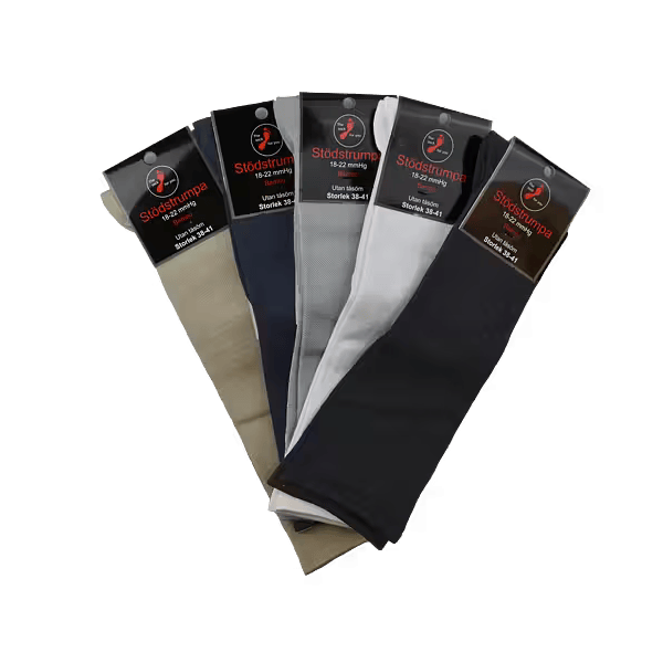 Stödstrumpan förebygger och lindrar åderbråck samt svullnad i benen, minskar risken för blodproppar vid exempelvis flygresor, och motverkar värk samtidigt som den främjar bättre blodcirkulation.